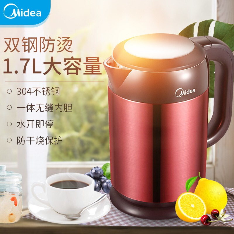 HJ1708家用双层防烫电热水壶【ABS+PC/红色】 |
