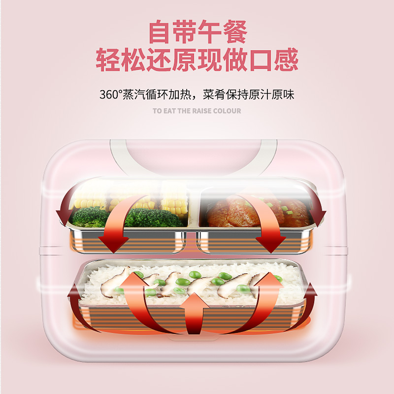 蒙得MD-666电热饭盒304不锈钢食品级不锈钢内胆精致【不锈钢/粉色】 |