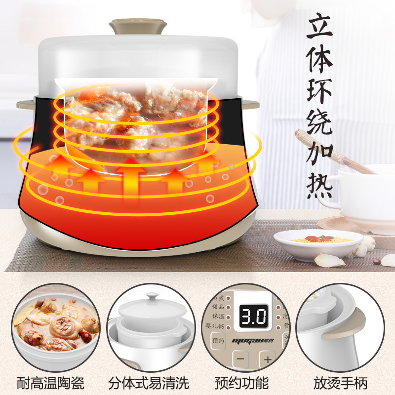 蒙得智能多功能带显示屏电炖盅隔水炖【陶瓷/白色】 |