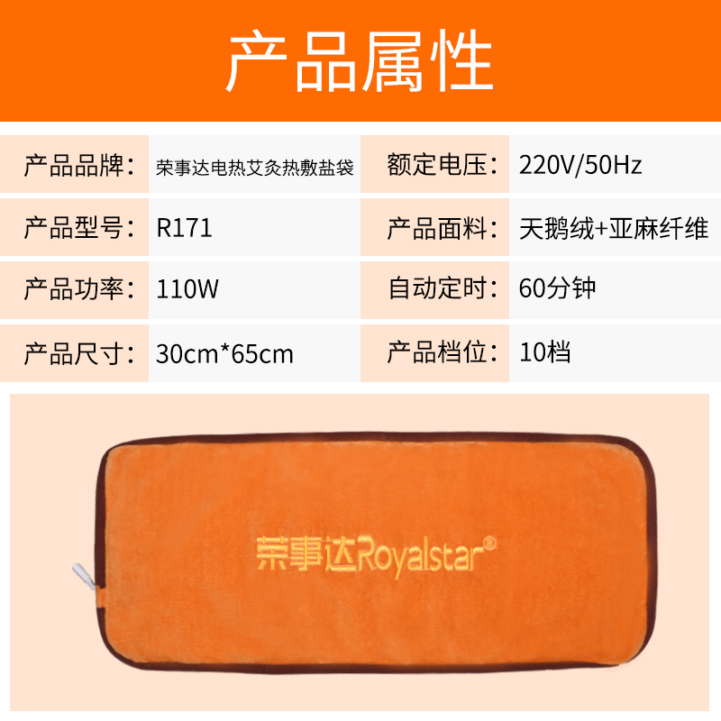 电热艾灸热敷盐袋【天鹅绒50%亚麻纤维50%/橘黄色】 |