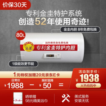 史密斯(A.O.SMITH)80升电热水器 专利金圭内胆 8年免费包换 速热节能保温款 一级能效 预约洗浴 CEWH-80A0 |