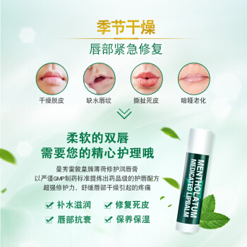 曼秀雷敦(Mentholatum)薄荷润唇膏养护防干裂防脱皮保湿舒缓 修护双唇3.5g(无色无味 修护疼痛) |