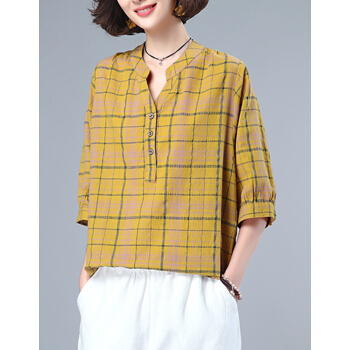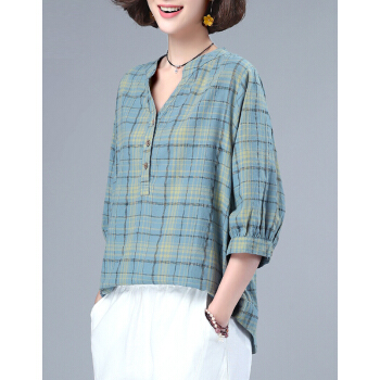 婪澈衬衫女女装夏季新款格子宽松薄款衬衣显瘦百搭七分袖上衣女 蓝色 请拍正确尺码 |