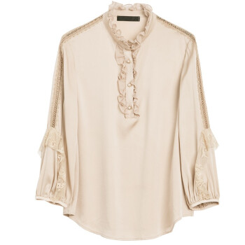 南极人 衬衫女夏季新款长袖女装衬衣韩版时尚木耳边立领镂空蕾丝拼接上衣潮 N4-DGB405-6890-香槟色 M |