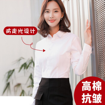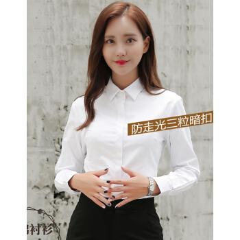 长袖衬衫女修身新款女士职业装商务正装白色V领大码工装衬衣酒店4S店工作服上衣 廷毅 方领(暗扣)白平纹 37 |