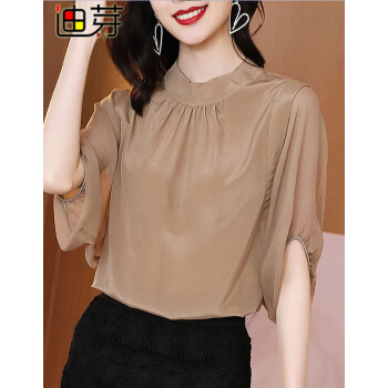 迪芽衬衫女秋季新品时尚韩版ins潮流纯色上衣宽松显瘦短袖圆领套头妈妈装8255 咖啡色 请拍正确尺码 |