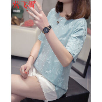 莺飞雪短袖t恤女夏季新款韩版宽松休闲学生大码女装显瘦百搭上衣打底衫女 浅蓝色8862 XXL(建议135-150斤) |