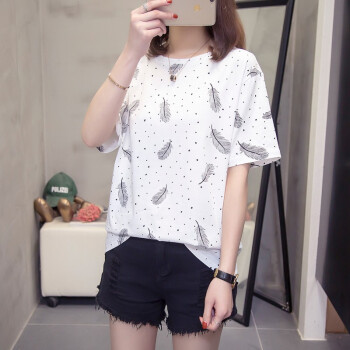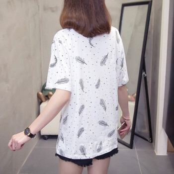 莺飞雪短袖t恤女夏季新款韩版宽松休闲学生大码女装显瘦百搭上衣打底衫女 白色6213 L(建议90-115斤) |