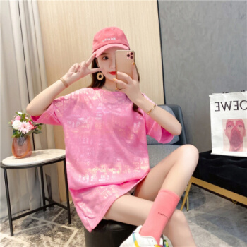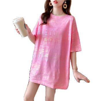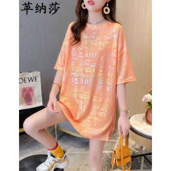苹纳莎 短袖T恤女韩版宽松夏季新款时尚个性中长款亮闪闪上衣大码女装打底衣服潮 桔色 L |