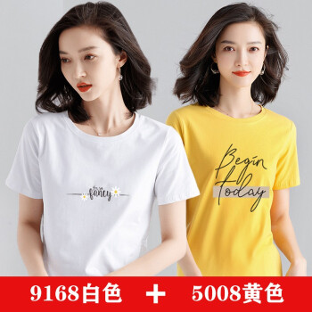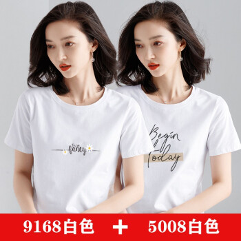 【两件装】知语者女装短袖t恤女宽松体恤大码显瘦上衣夏季新款百搭韩版印花时尚纯棉打底衫T恤女 9168白色+5008粉色 L《105-115斤》 |