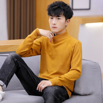 毛衣男半高领潮青年学生套头针织衫打底衫韩版修身休闲毛线衣 113黄色 165/80A |