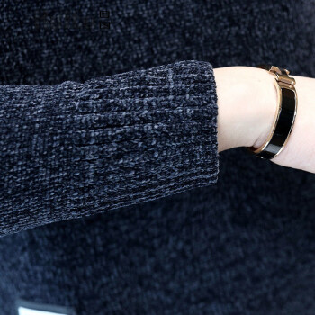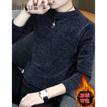 回图 秋冬季毛衣男圆领雪尼尔加绒加厚款毛衫半高领针织衫韩版潮流修身冬装衣服纯色长袖t恤情侣男装毛线衣 深灰蓝色 XL |
