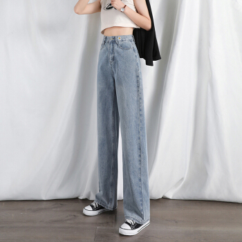 高腰阔腿裤泫雅牛仔裤女新款夏季薄款直筒宽松垂感拖地裤子 复古蓝 XXS 75-85斤 |