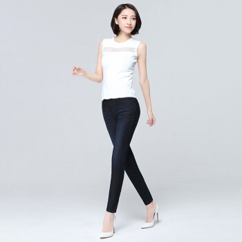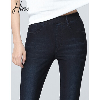 【品质好裤】Hizze女裤春秋牛仔打底裤女外穿高腰松紧腰弹力小脚裤铅笔裤四面弹显瘦牛仔长裤 蓝黑色 请拍正确尺码 |