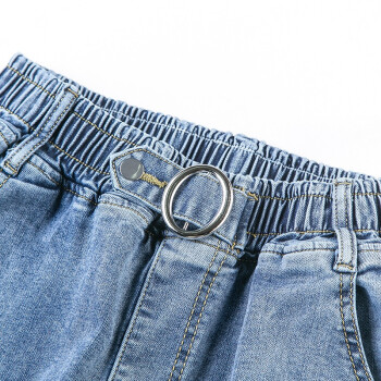 吧吆吆休闲牛仔裤女夏季新款高腰女装宽松直筒哈伦裤百搭薄款天丝九分裤女裤小脚裤子潮 浅蓝夏款 28 |