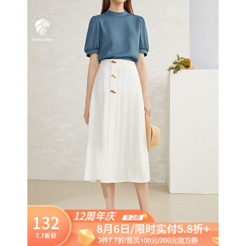 范思蓝恩 夏季新款中长款高腰半身裙设计感小众气质压褶裙子女 白色 S |