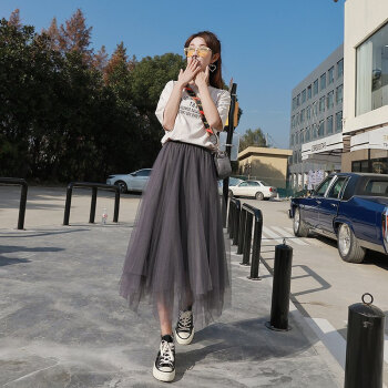 网纱半身裙女春夏季中长款学生大摆纱纱裙新款百褶中长裙仙女裙子 黑色 均码 |