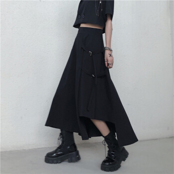 格洛基不规则半身裙女春夏新款ins火原宿风高腰A字长裙复古显瘦工装裙 黑色 M |