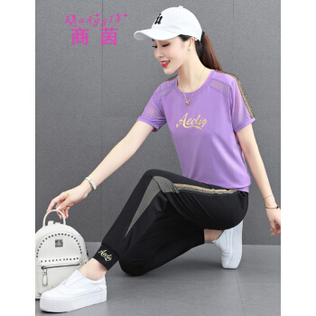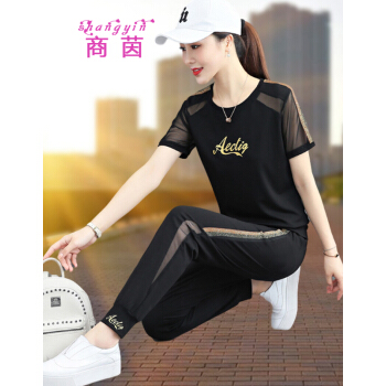 商茵休闲时尚运动服套装女休闲裤女夏季冰丝新款宽松两件套 黑色套装 M建议(80-95体重)出监用夏服 |