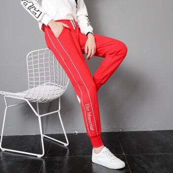 莉社运动裤女新款学生韩版宽松显瘦休闲裤 黑色长裤 L |