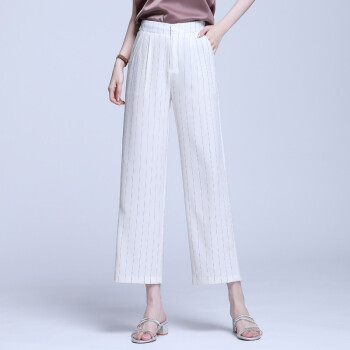 信和祥休闲裤女高腰条纹阔腿裤女春夏季新品韩版弹力垂感加大码直筒裤女士长裤 杏色 3XL【31】 |