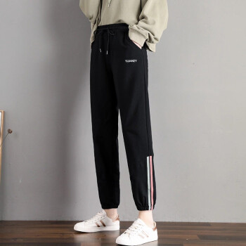 南极人 休闲裤女春夏新款时尚大码运动裤女学生宽松韩版显瘦哈伦裤春季束脚百搭裤子 黑色-长裤 请拍正确尺码 |