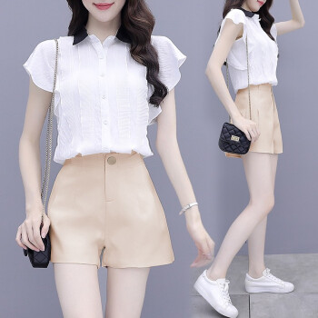 思语林 雪纺衫短裤套装女夏装新款小个子显高洋气减龄休闲短裤子两件套 粉色套装 S |