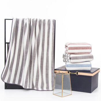 三利 柔软吸水速干大浴巾 条纹洗澡巾裹身巾 70*140cm 银灰色 |