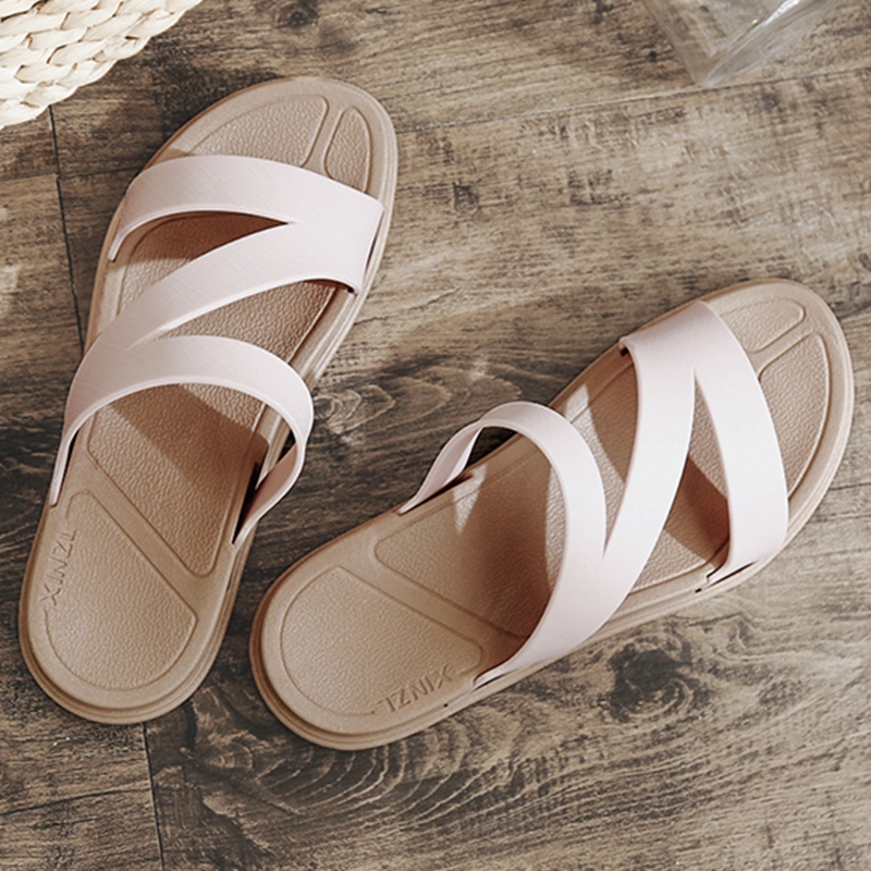 【防滑垫】日系简约舒适按摩点浴室防滑情侣凉拖鞋【EVA/浅粉】 |