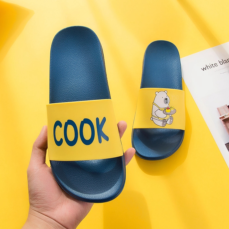 可爱卡通趣味送餐熊撞色亲子款凉拖鞋【橡塑/海蓝/黄色】 |