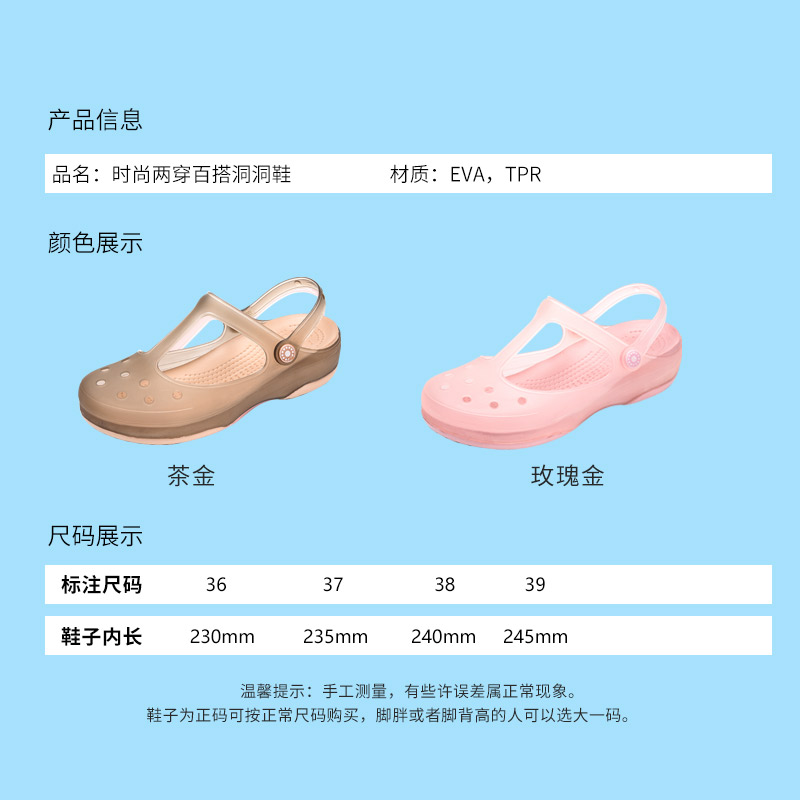 【超值单品】百搭舒适休闲滩凉洞洞鞋【底:EVA,面:TPR/玫瑰金】 |