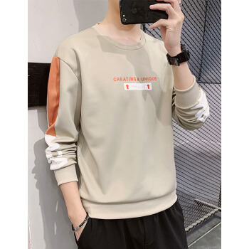 寄风 卫衣男圆领春秋季新款韩版潮流男士长袖T恤春装上衣大码外衣 2008灰色(单件) XL |