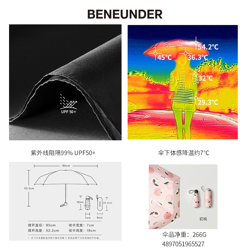 蕉下太阳伞女晴雨两用防晒防紫外线折叠遮阳雨伞小巧便携可爱 果趣【聚酯纤维/(初桃)】 |