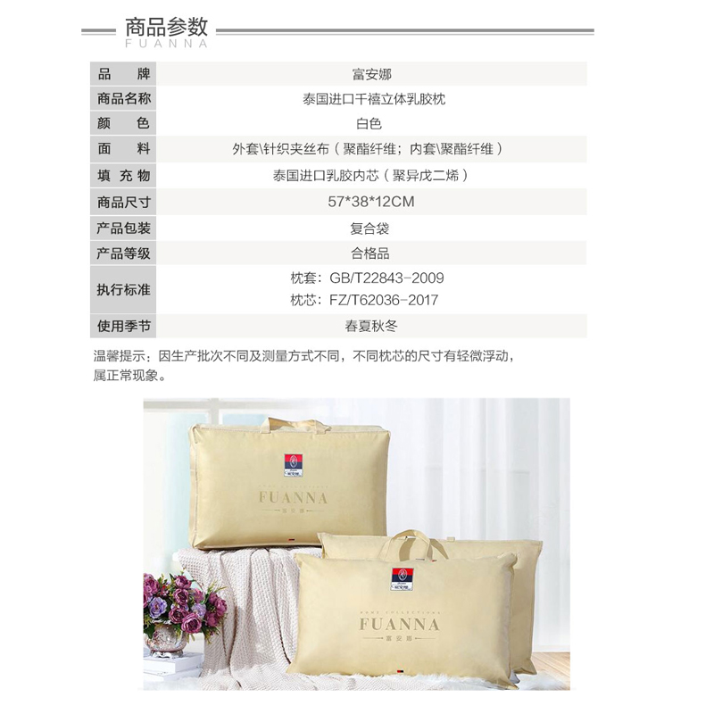 泰国原装进口千禧立体乳胶枕(枕芯1只)【面料:聚酯纤维;填充:聚异戊二烯/白】 |