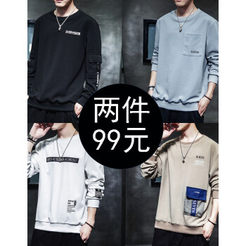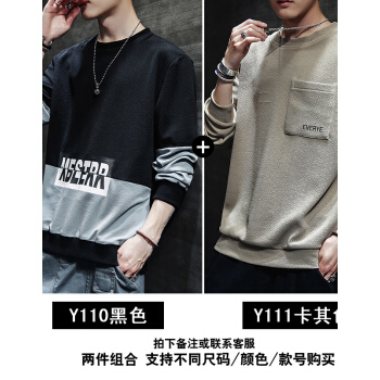 慕林初客卫衣男2018春秋季韩版学生圆领套头男士卫衣夏青年加大码长袖T恤打底上衣衣服 Y112黑色 XL |