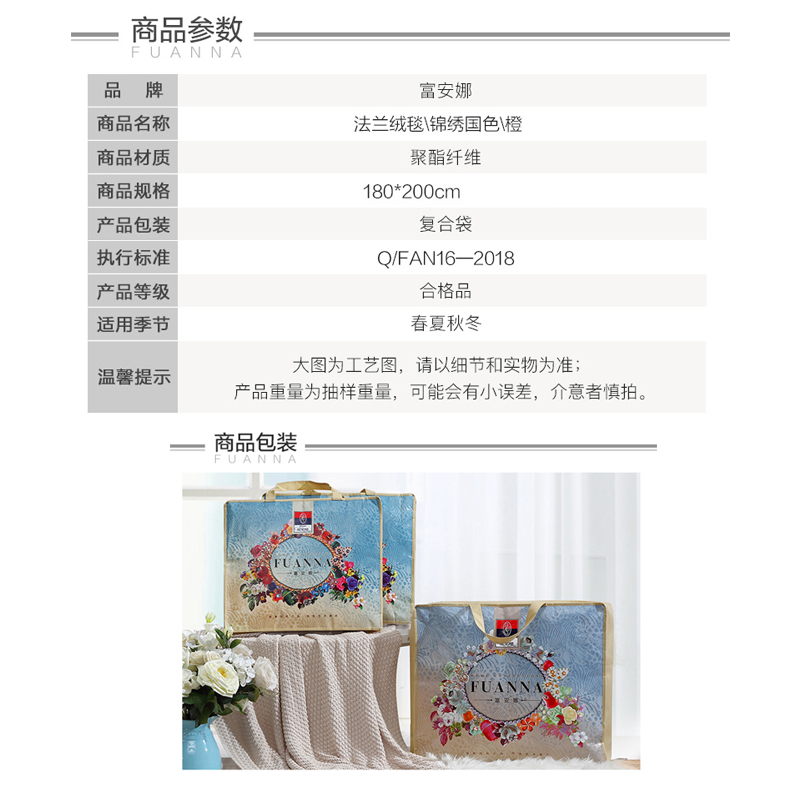 锦绣国色 法兰绒毯(毯子1件)【聚酯纤维/橙】 |