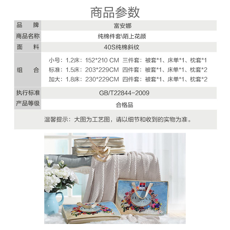 陌上花颜 床单三件套(被套1件床单1件枕套1件)(适合1.2米床)【纯棉/黄】 |