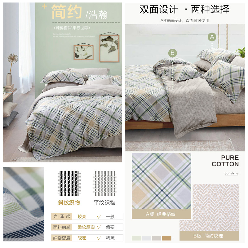 平行世界 床单四件套(被套1件床单1件枕套2件)(适合1.8米床)【纯棉/绿】 |