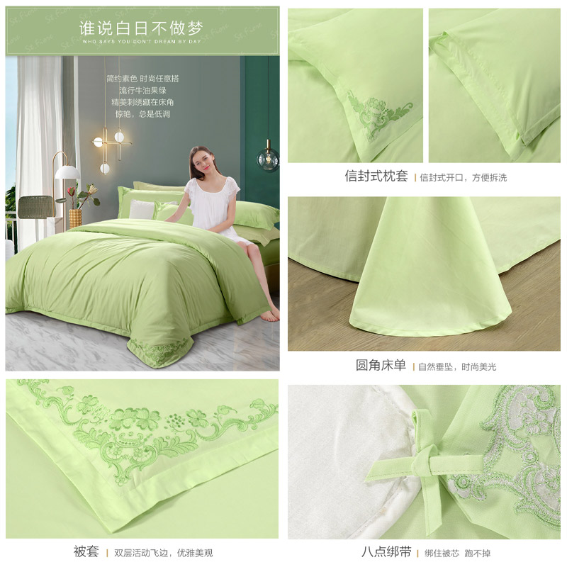 西湖早春 床单四件套(被套1件床单1件枕套2件)(适合1.8米床)【纯棉/绿】 |