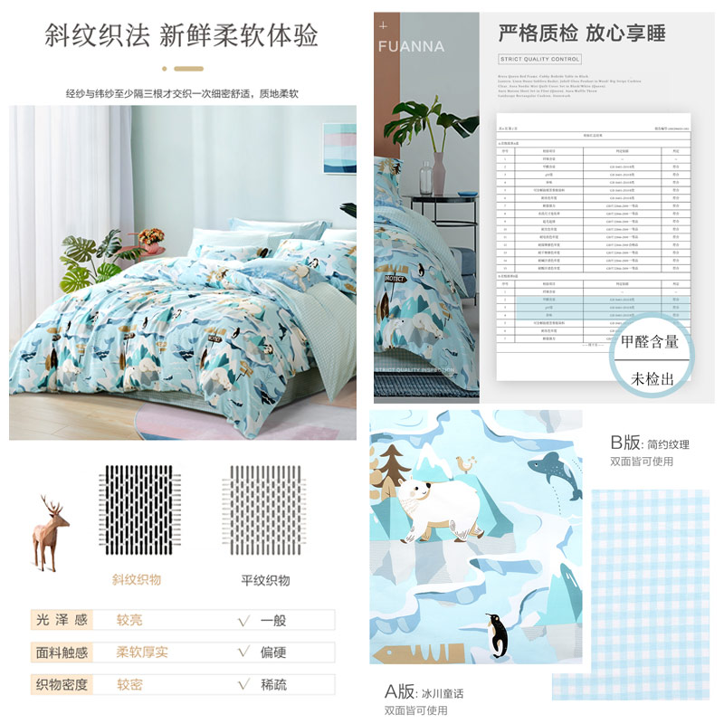 北极故事 床单四件套(被套1件床单1件枕套2件)(适合1.5米床)【纯棉/蓝】 |