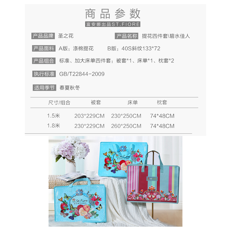 碧水佳人 床单四件套(被套1件床单1件枕套2件)(适合1.8米床)【A版:涤棉提花;B版:纯棉/绿】 |