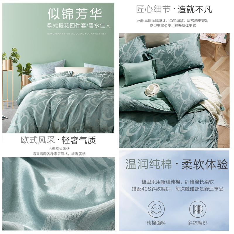 碧水佳人 床单四件套(被套1件床单1件枕套2件)(适合1.5米床)【A版:涤棉提花;B版:纯棉/绿】 |