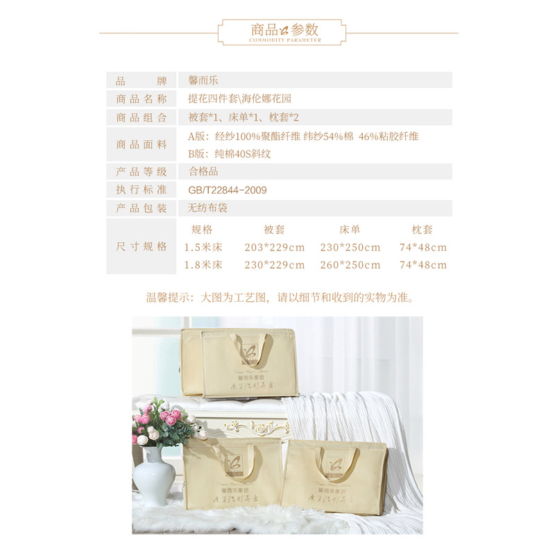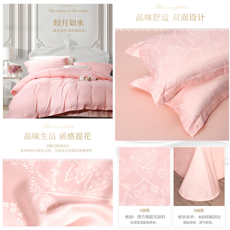 海伦娜花园 床单四件套(被套1件床单1件枕套2件)(适合1.8米床)【A版:聚酯纤维+棉+粘胶纤维;B版:纯棉/粉】 |