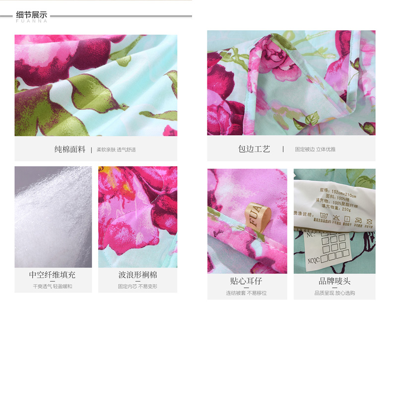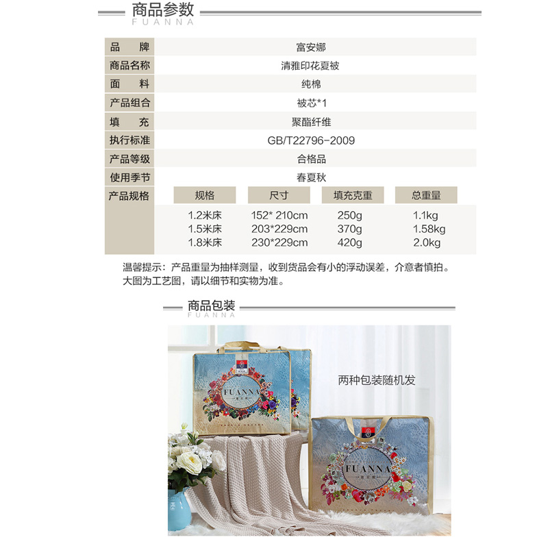 烟雨怡花清雅印花夏被(被芯1件)(适合1.5米床)【面料:纯棉;填充:聚酯纤维/红色】 |