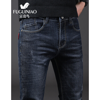 富贵鸟牛仔裤男士夏季新品韩版潮流修身小脚裤休闲弹力裤子男裤 8913深灰 30 |