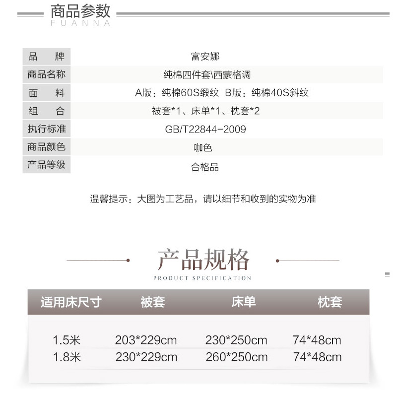 纯棉缎纹床单四件套(被套1件 床单1件枕套2件)(适合1.8米床)【纯棉缎纹/咖啡】 |