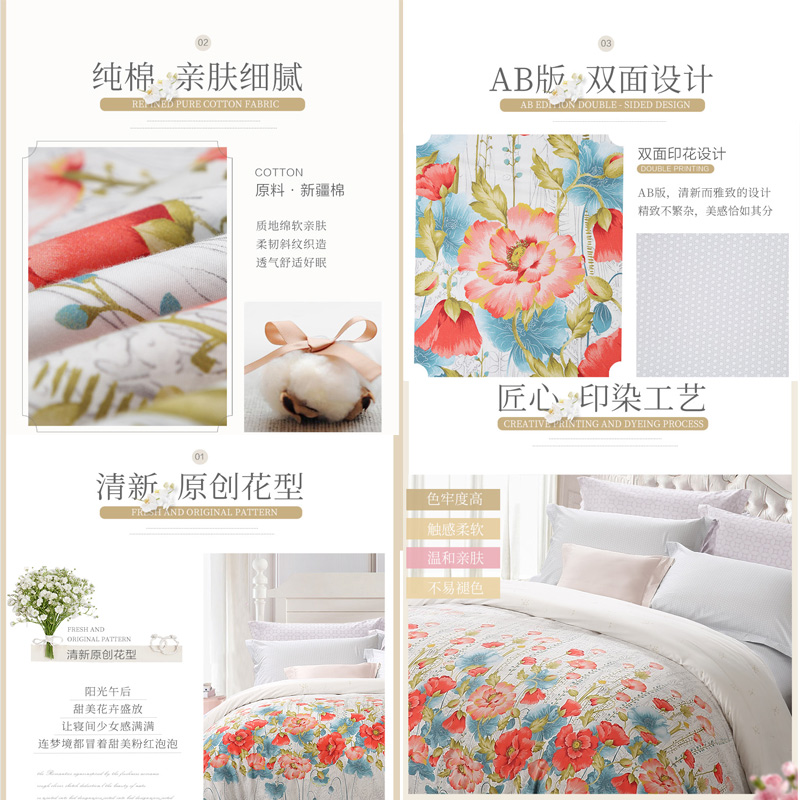 淡妆伊人 床单四件套(被套1件床单1件枕套2件)(适合1.8米床)【40支纯棉/白】 |