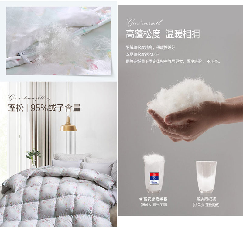 缤纷系列白鹅绒加厚被初樱(被芯1件)(适合1.5米床)【全涤磨毛防羽印花/浅绿】 |
