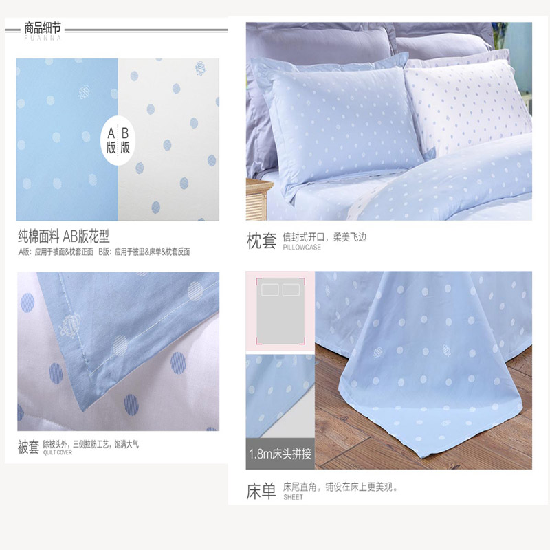 清新波点 床单四件套(被套1件 床单1件枕套2件)(适合1.5米床)【纯棉/浅蓝】 |