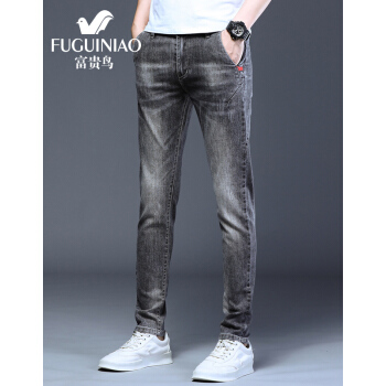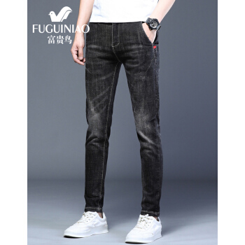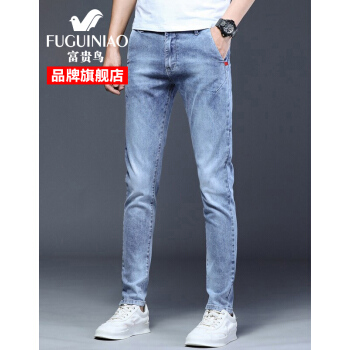 富贵鸟牛仔裤男夏季新品韩版潮流修身小脚裤男士弹力休闲裤子男裤 8605浅蓝 30 |